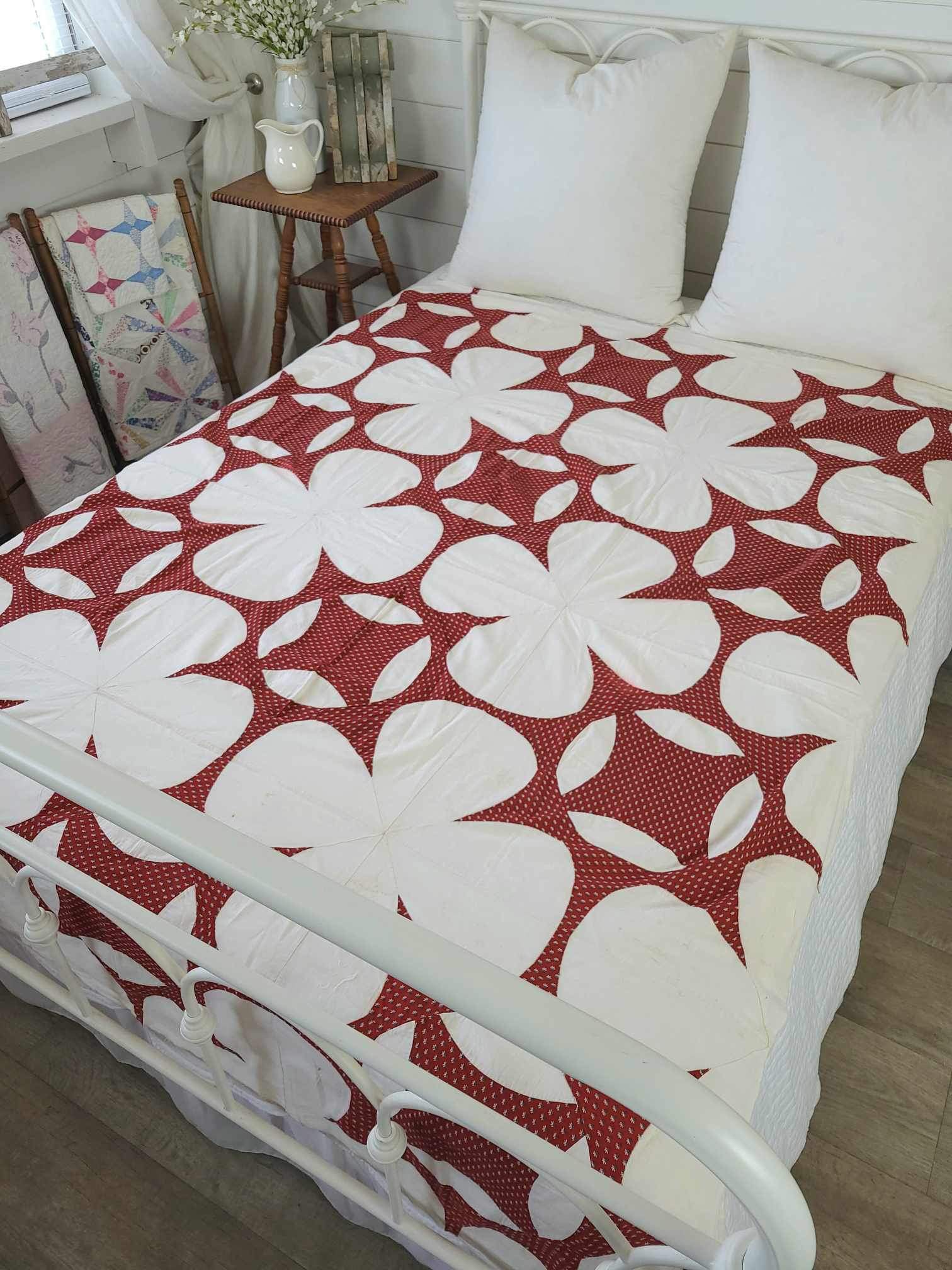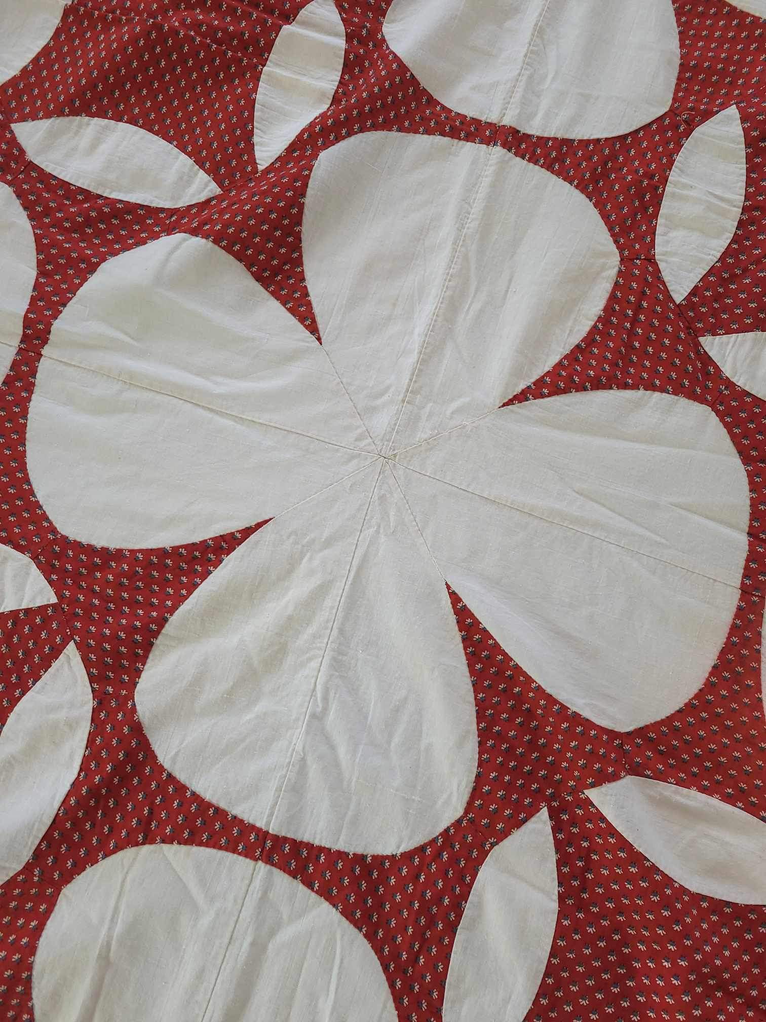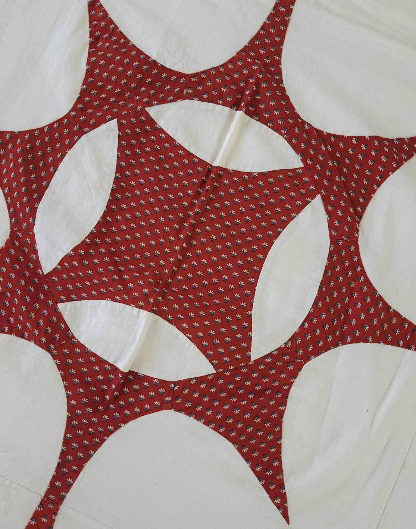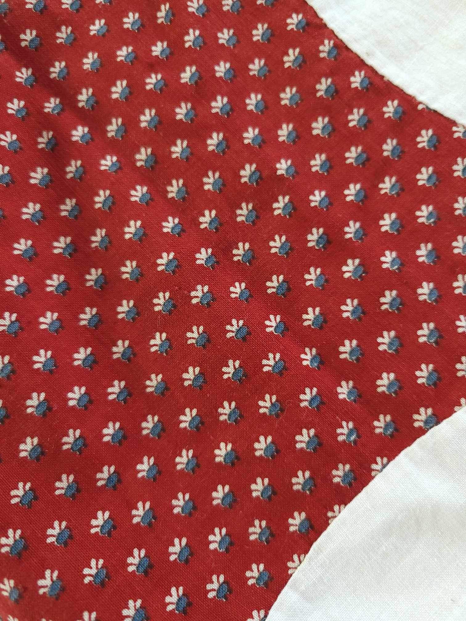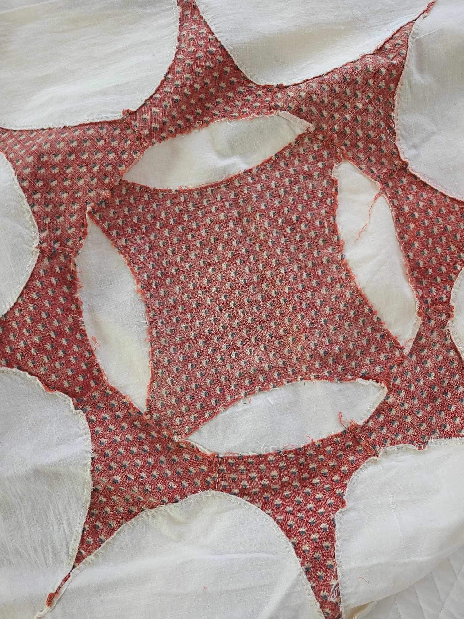 Exceptional Antique turkey red and off white mariners star quilt top