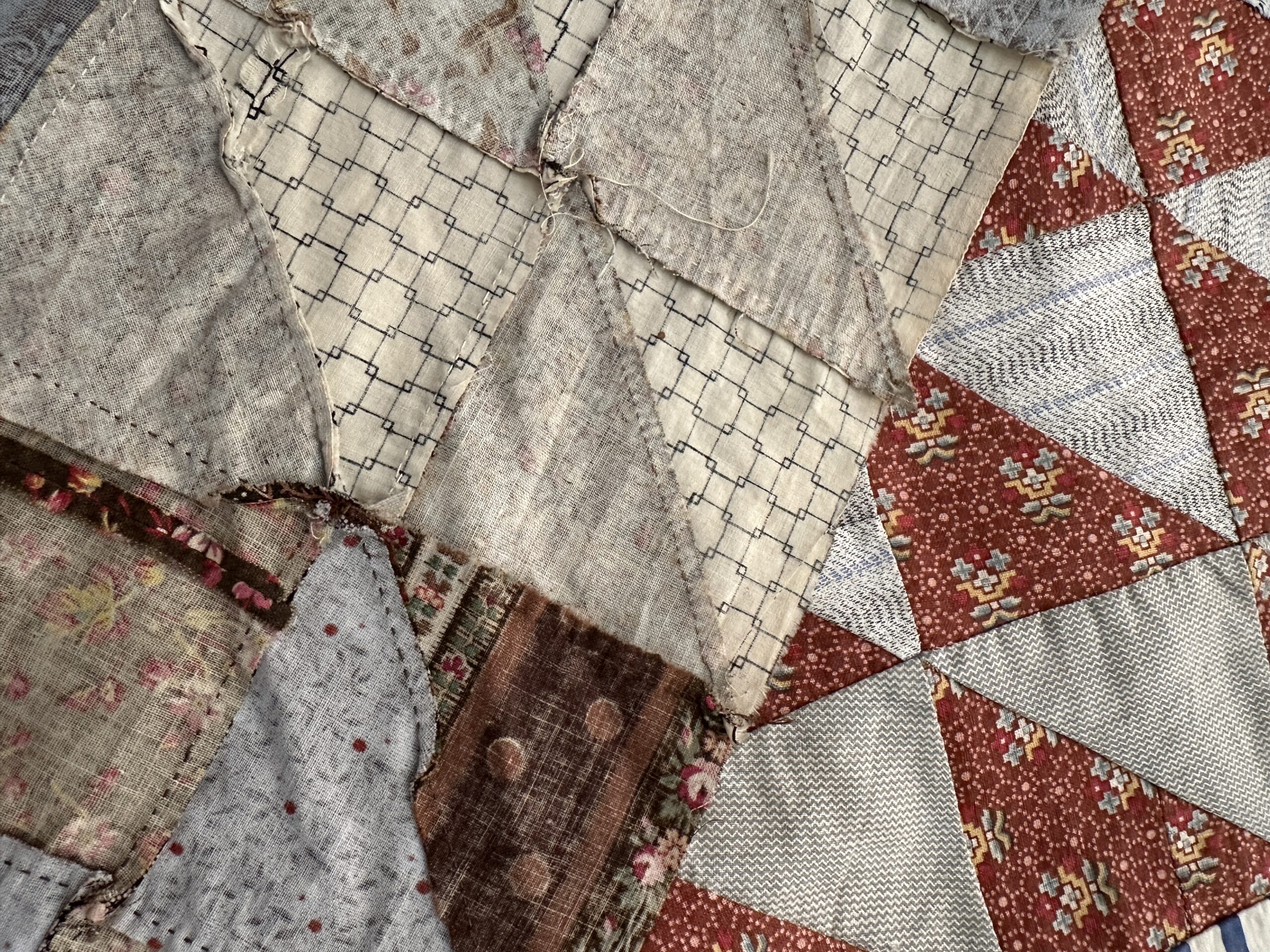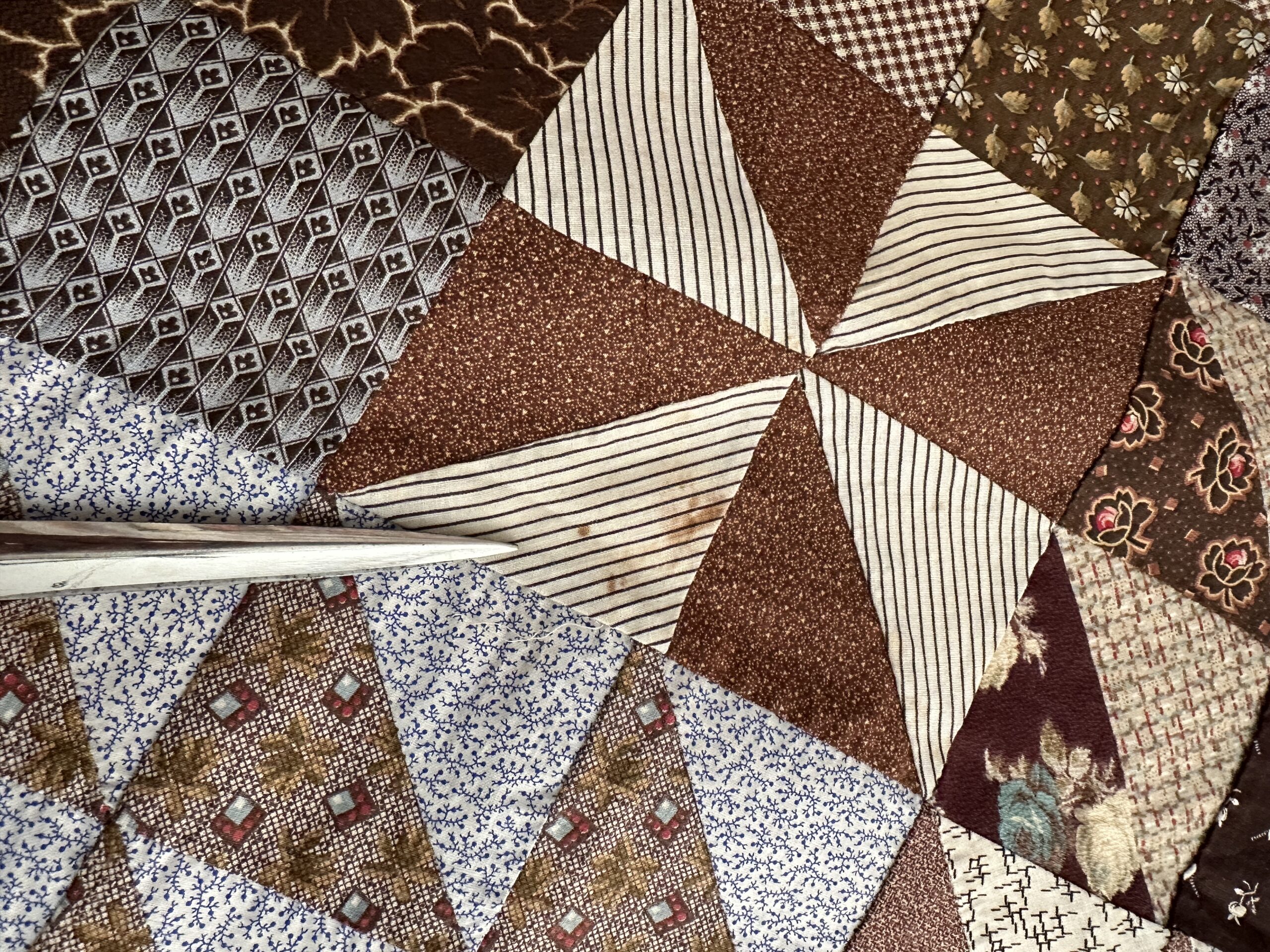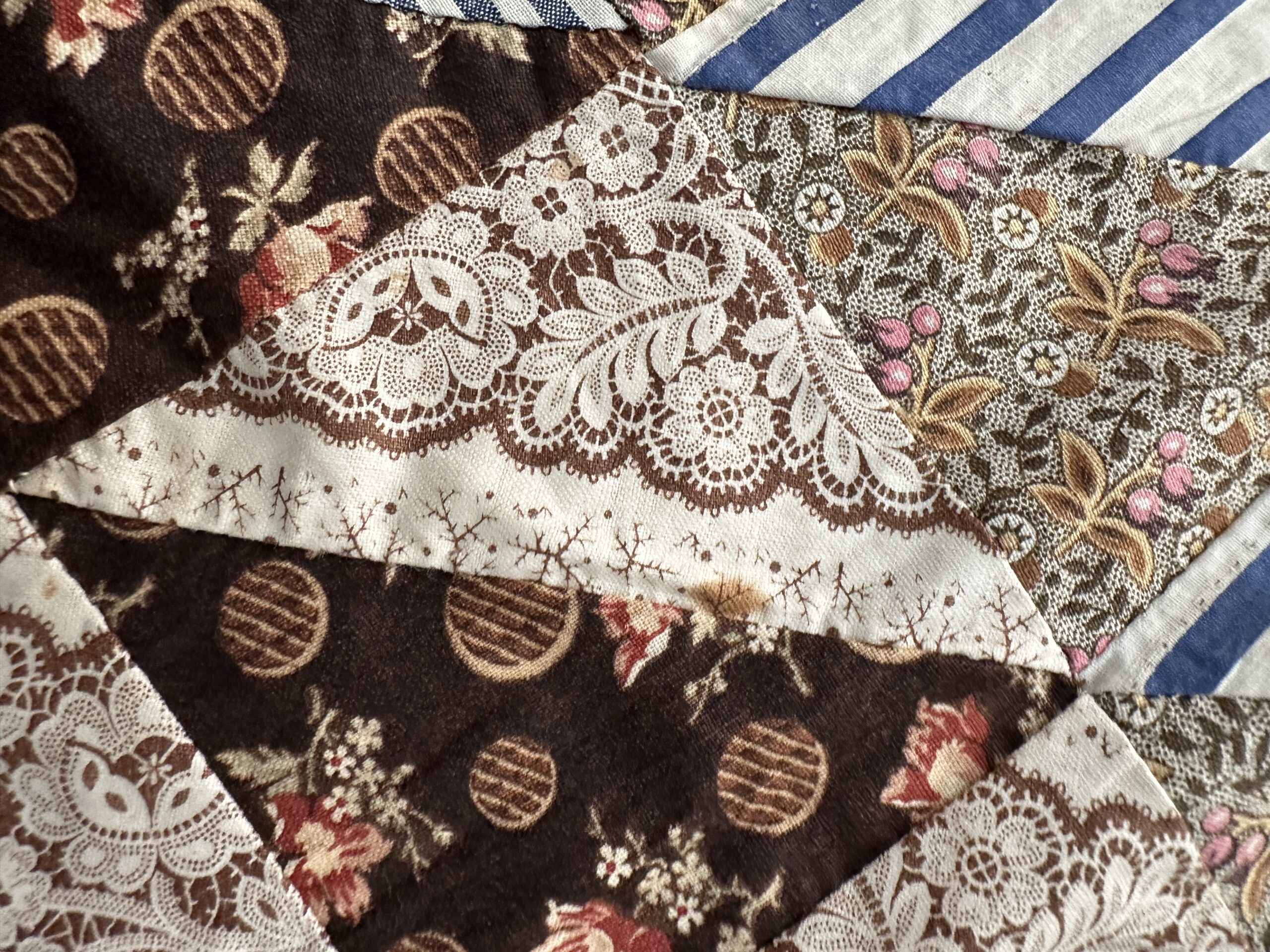 Pieced by hand with such amazing, tiny stitching that we mistook it at first for treadle stitching!