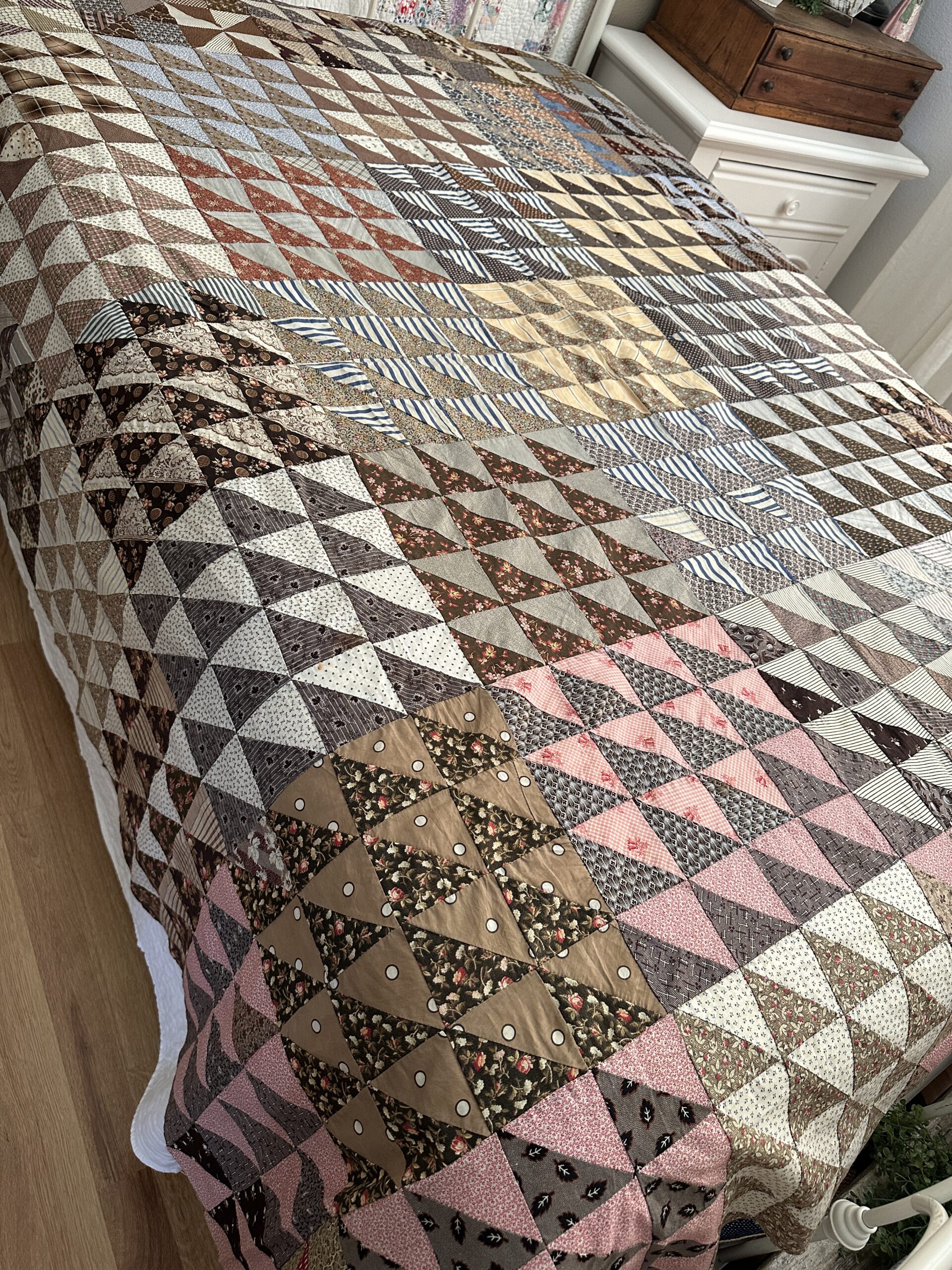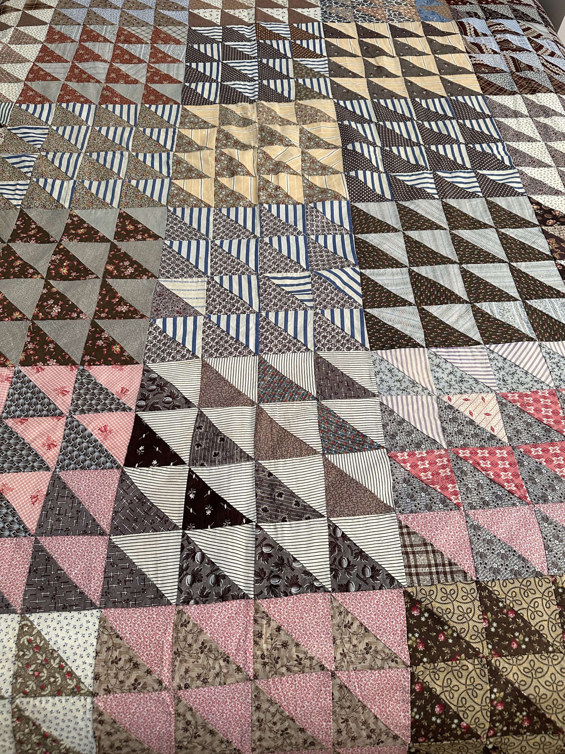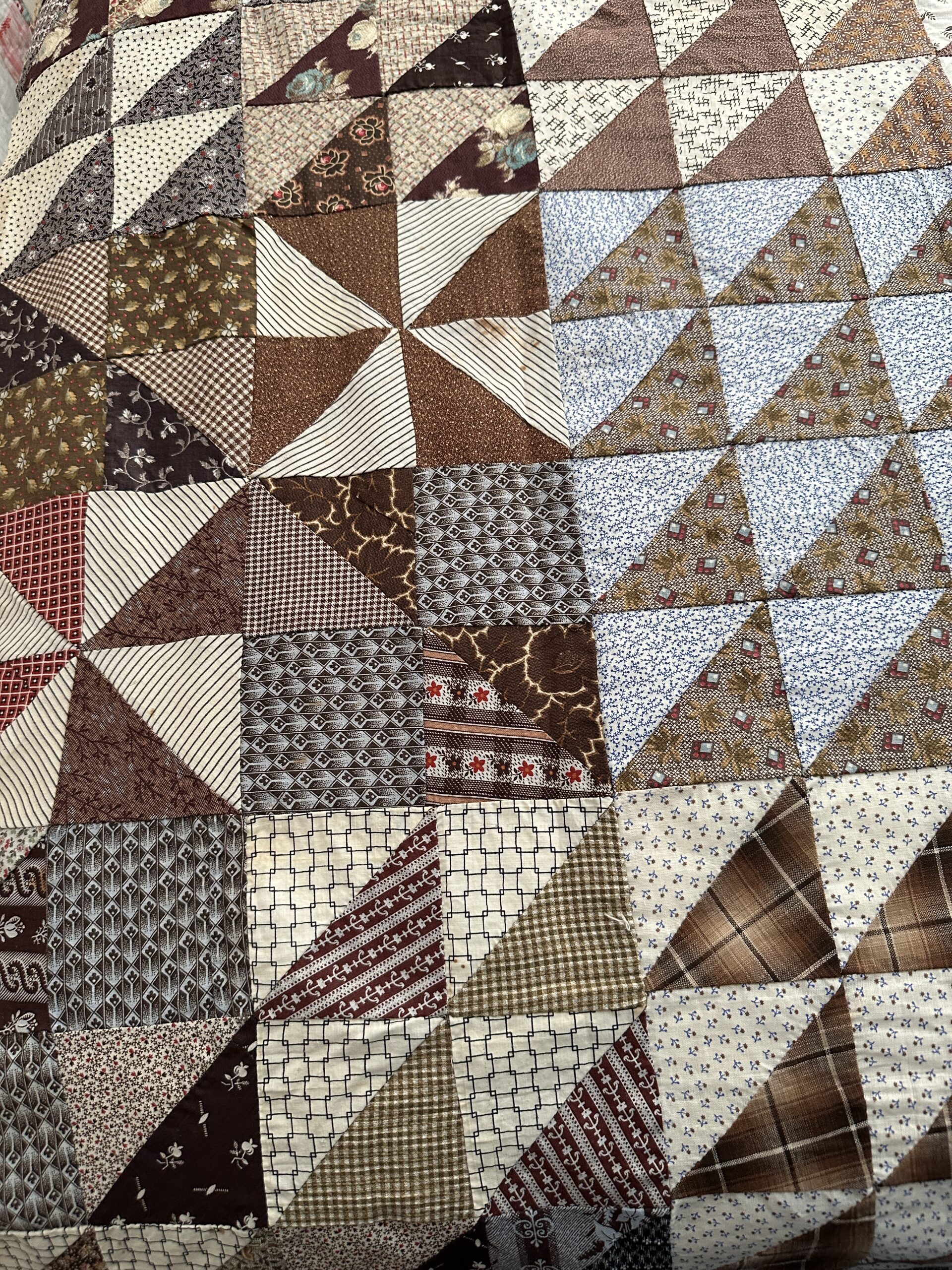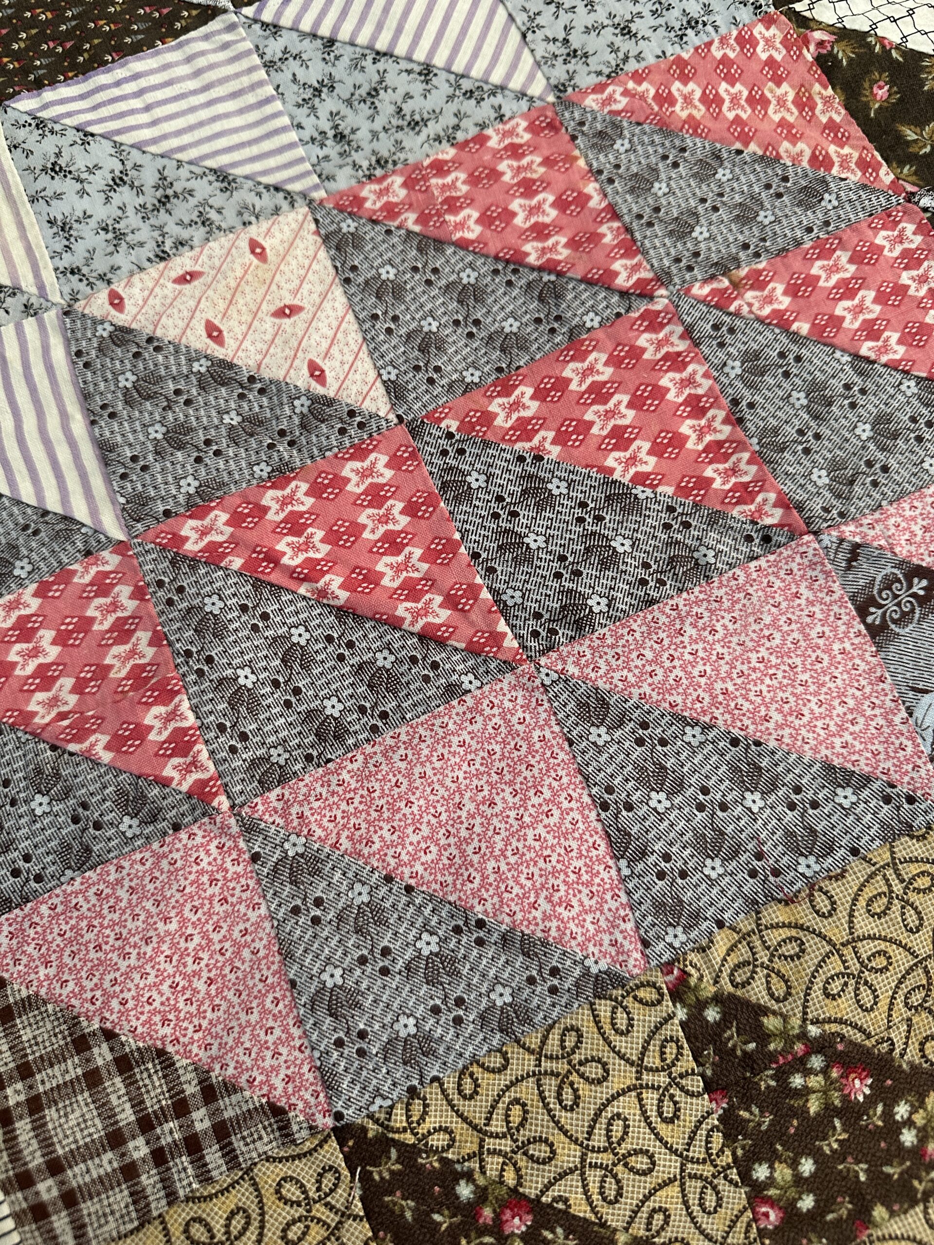 Pieced by hand with such amazing, tiny stitching that we mistook it at first for treadle stitching!