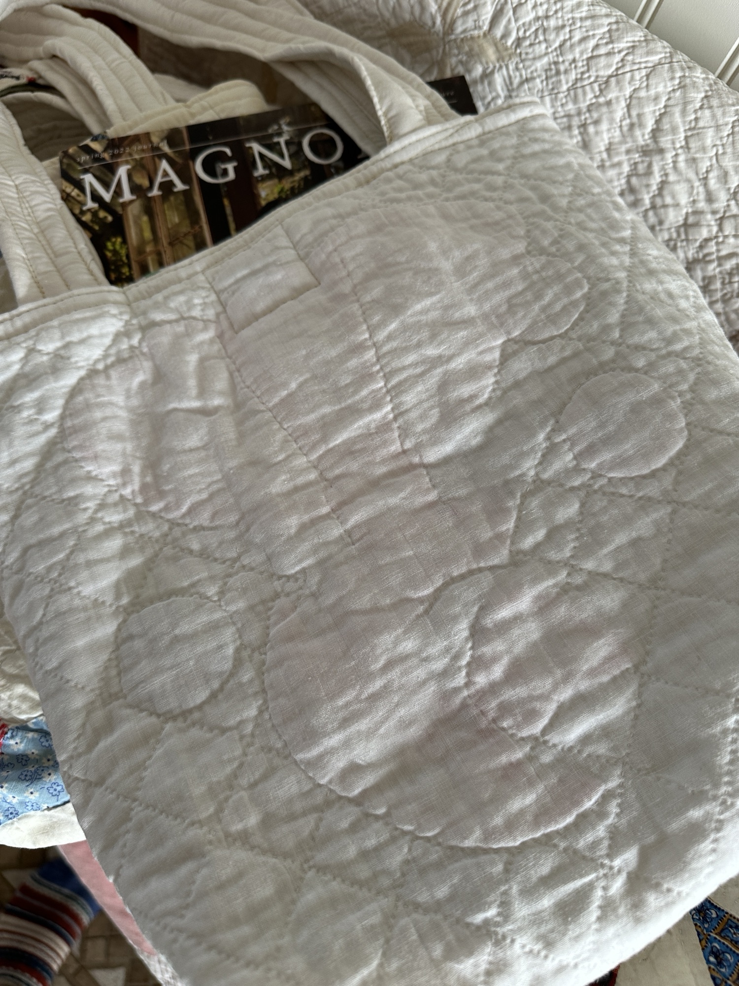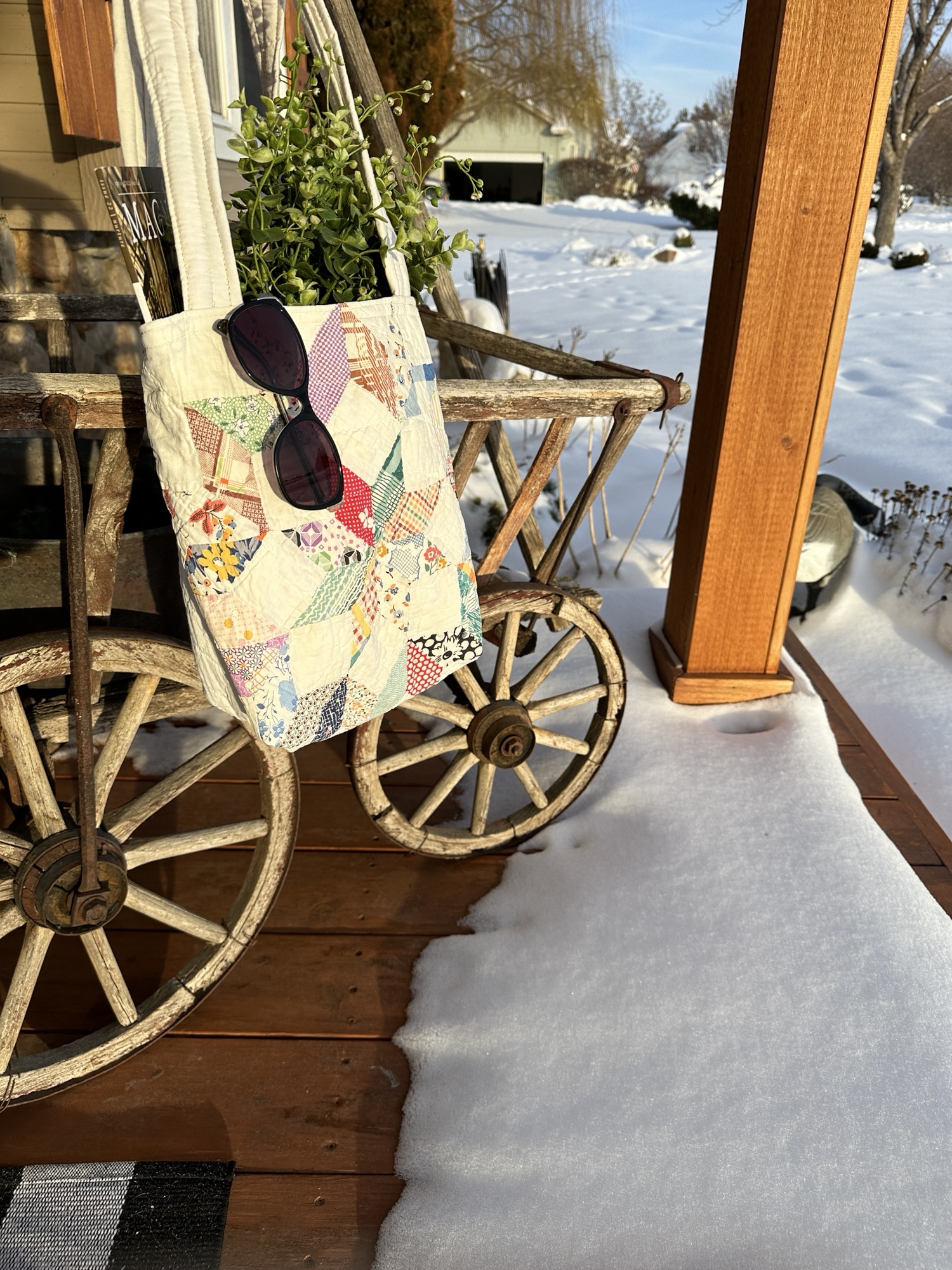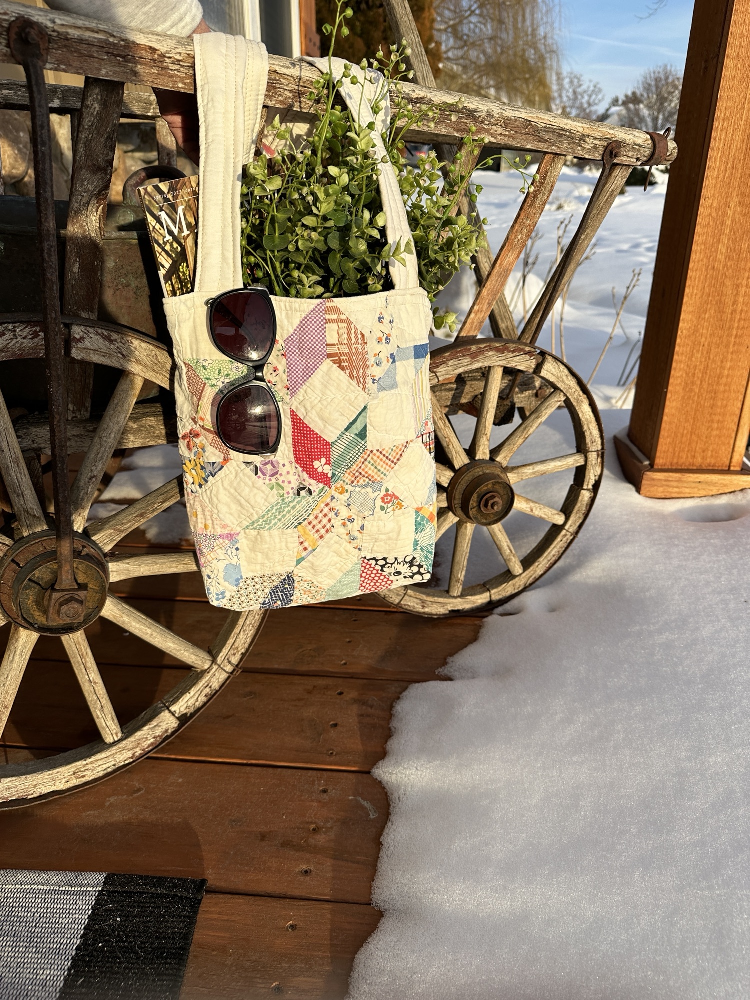 Each bag is made from the same quilt and will be slightly different, a true one of a kind item.