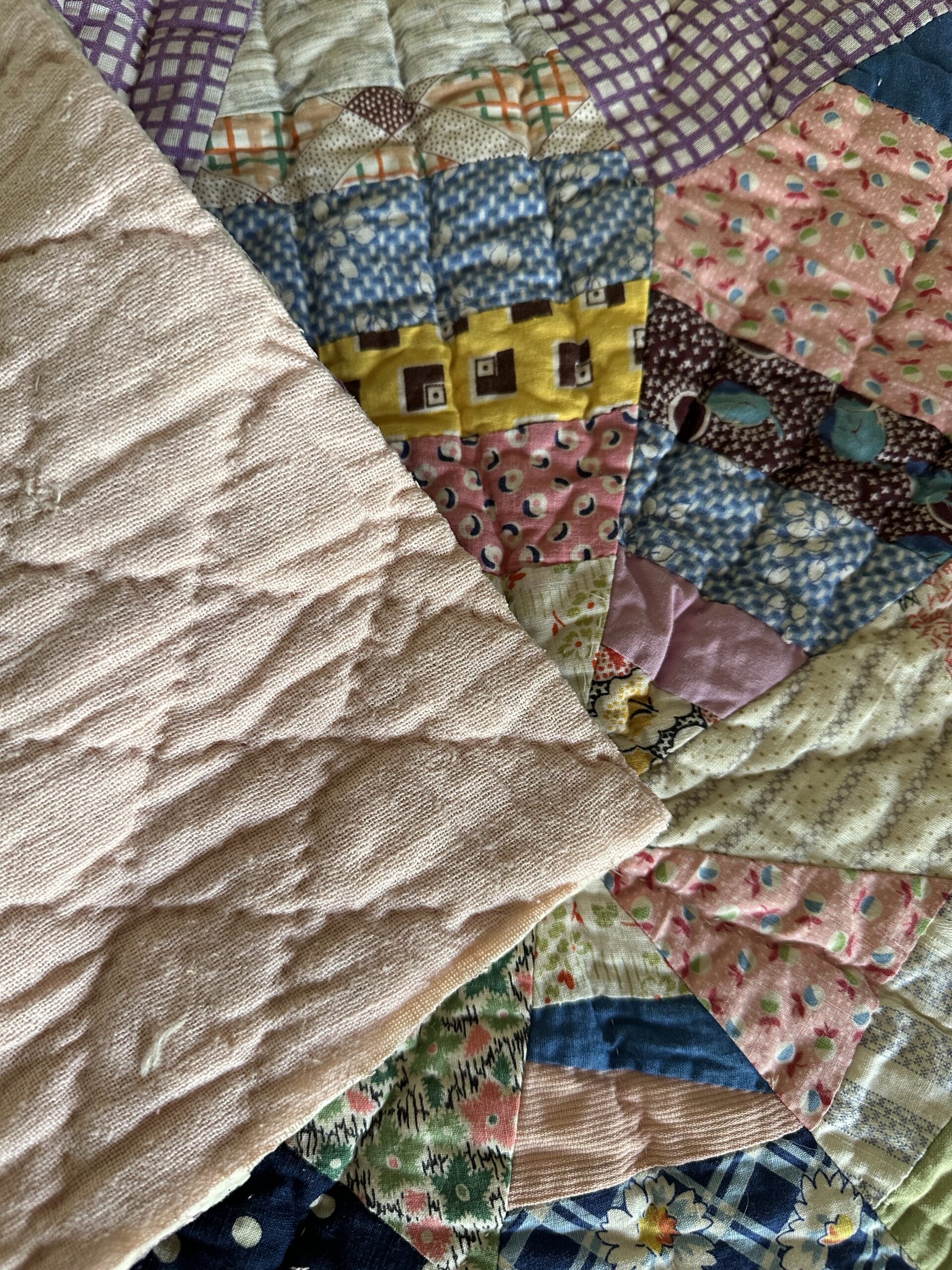 Beautiful feedsack prints in this large 22 x 21″ quilt piece.