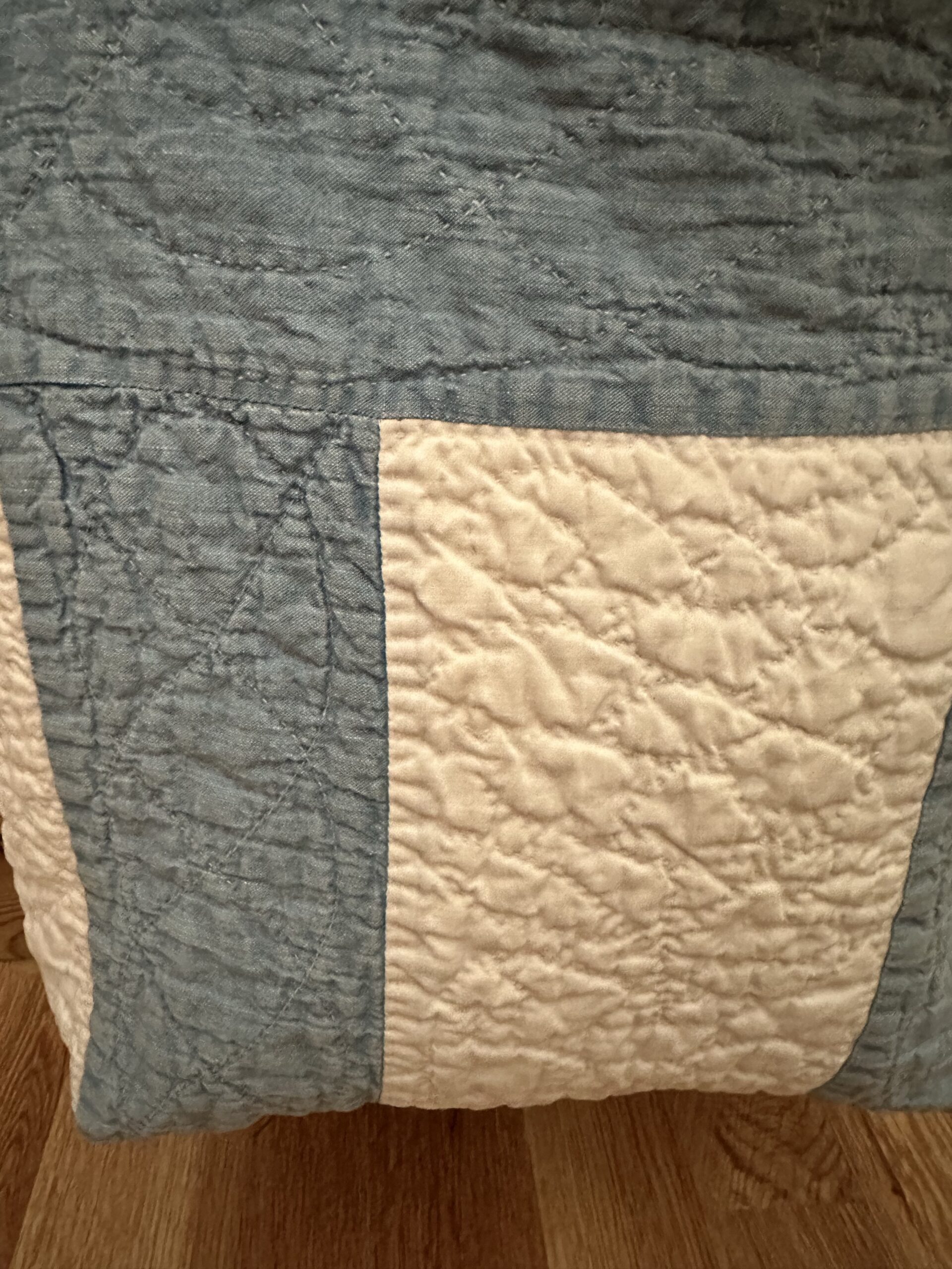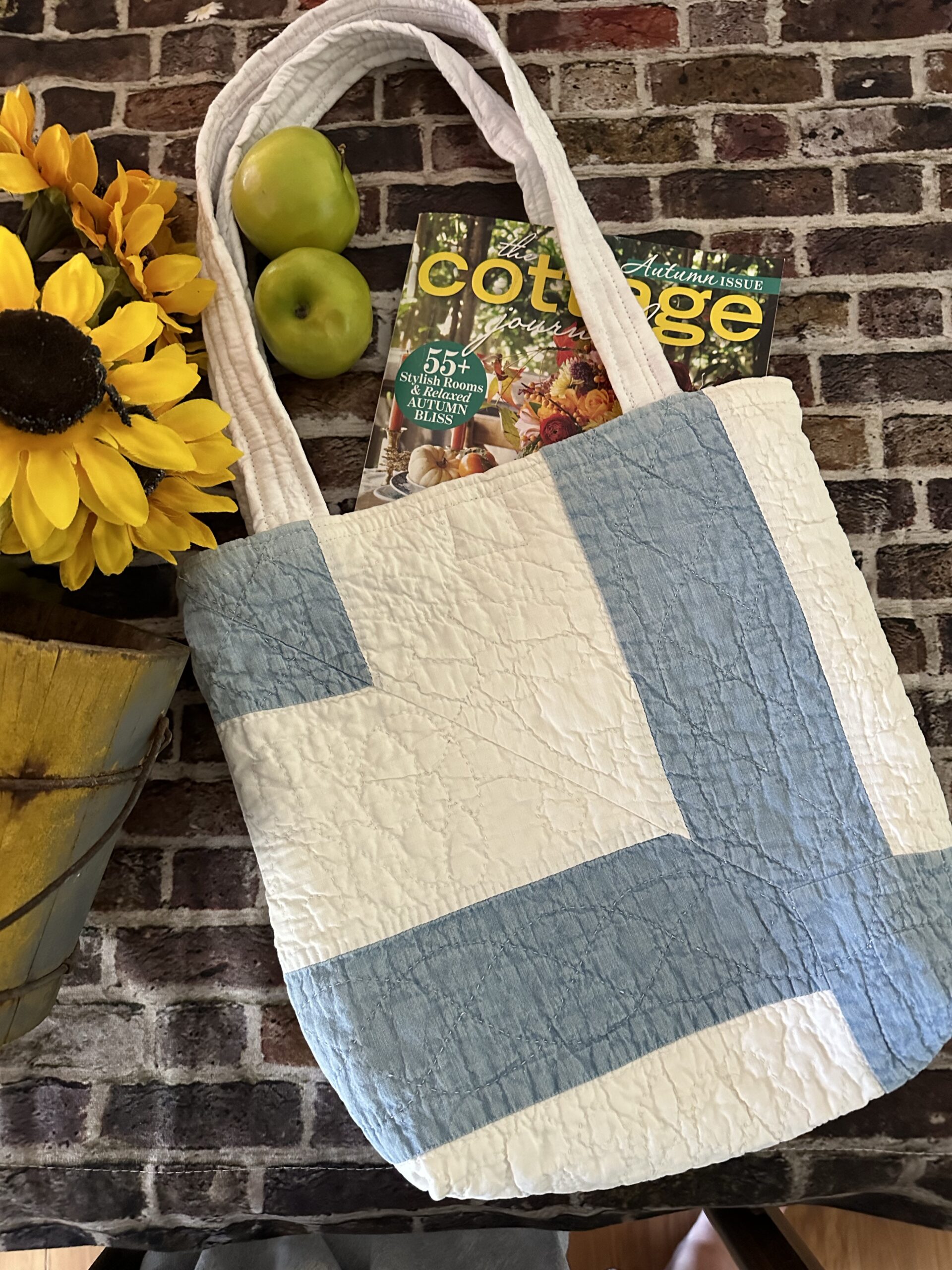 Each bag is made from the same vintage quilt and will be slightly different, a true one of a kind item. Slight surface wear or tanning is to be expected from a quilt so old, but we have picked the very best pieces for our totes.