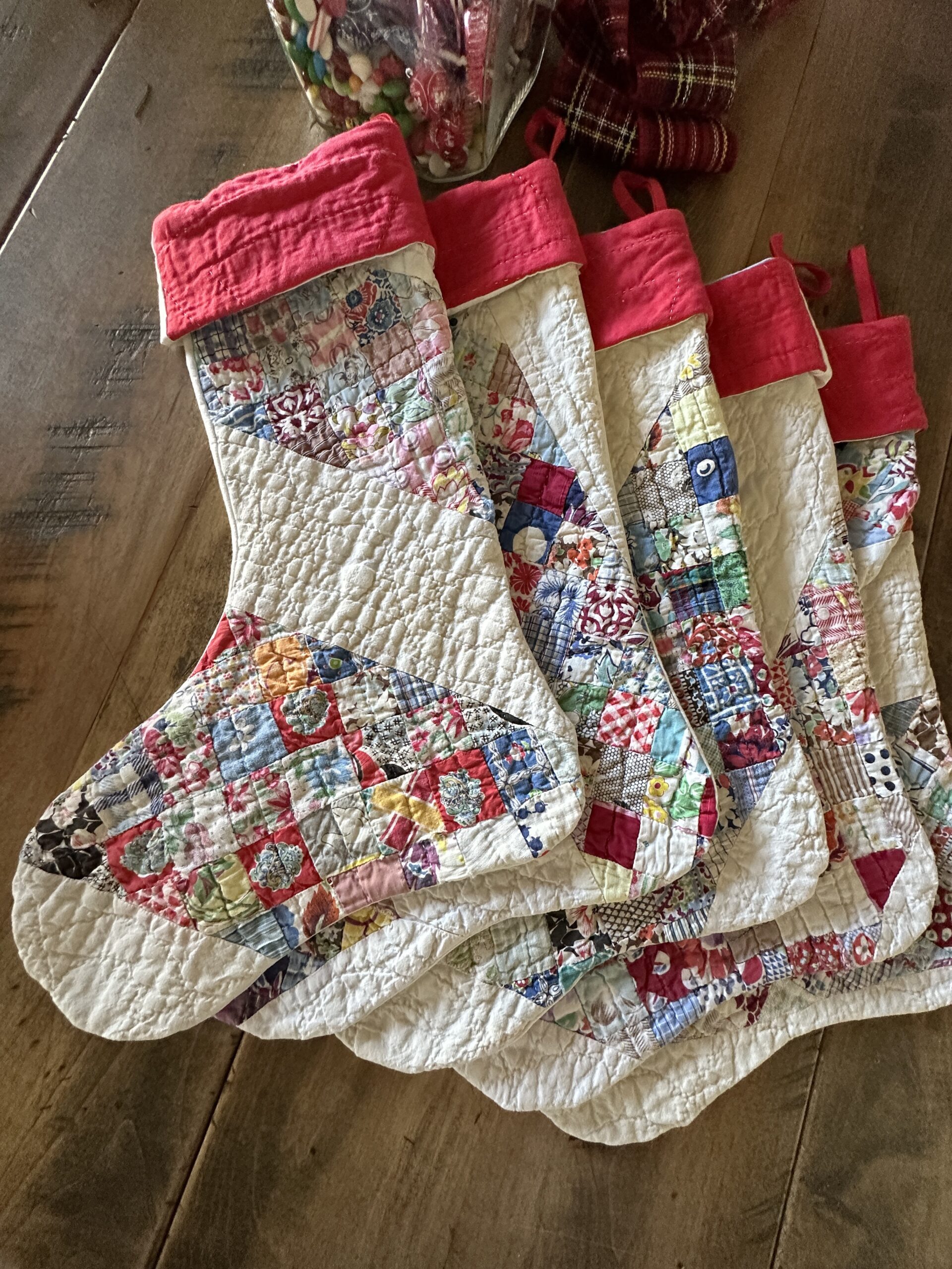 A lovely Christmas Stocking that we made from a 1940s depression era quilt.