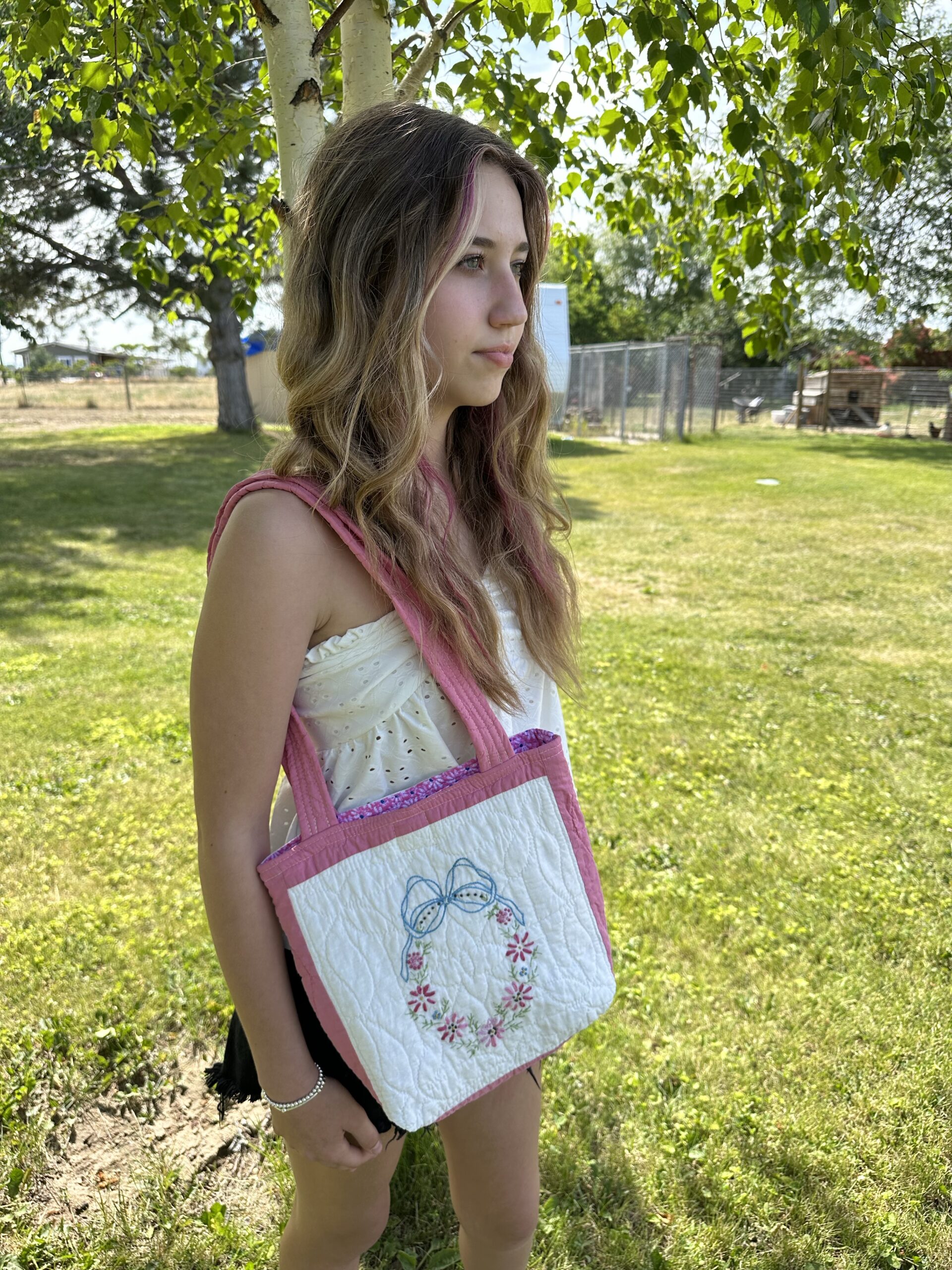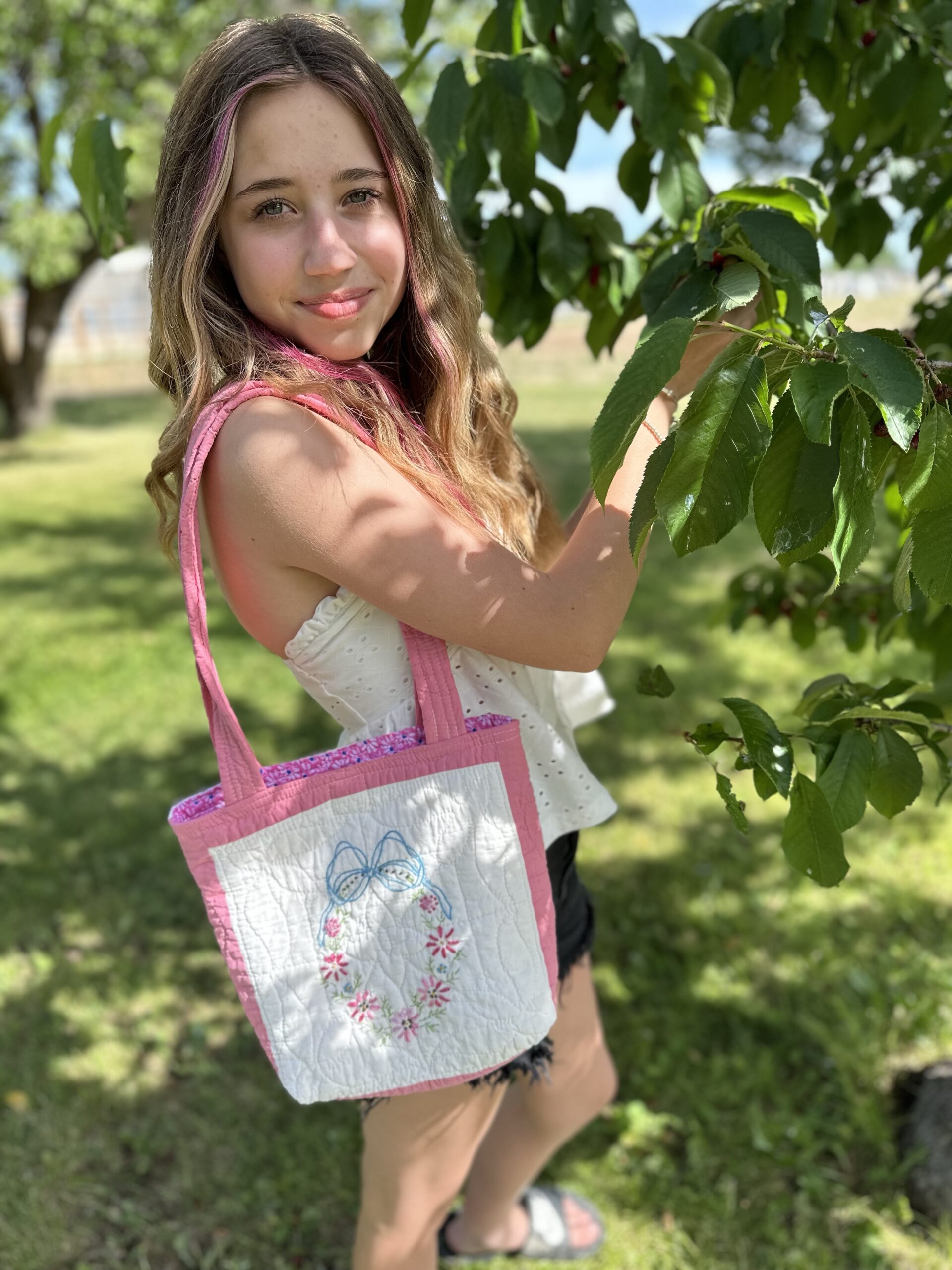 Comfy handles are made from the quilt.